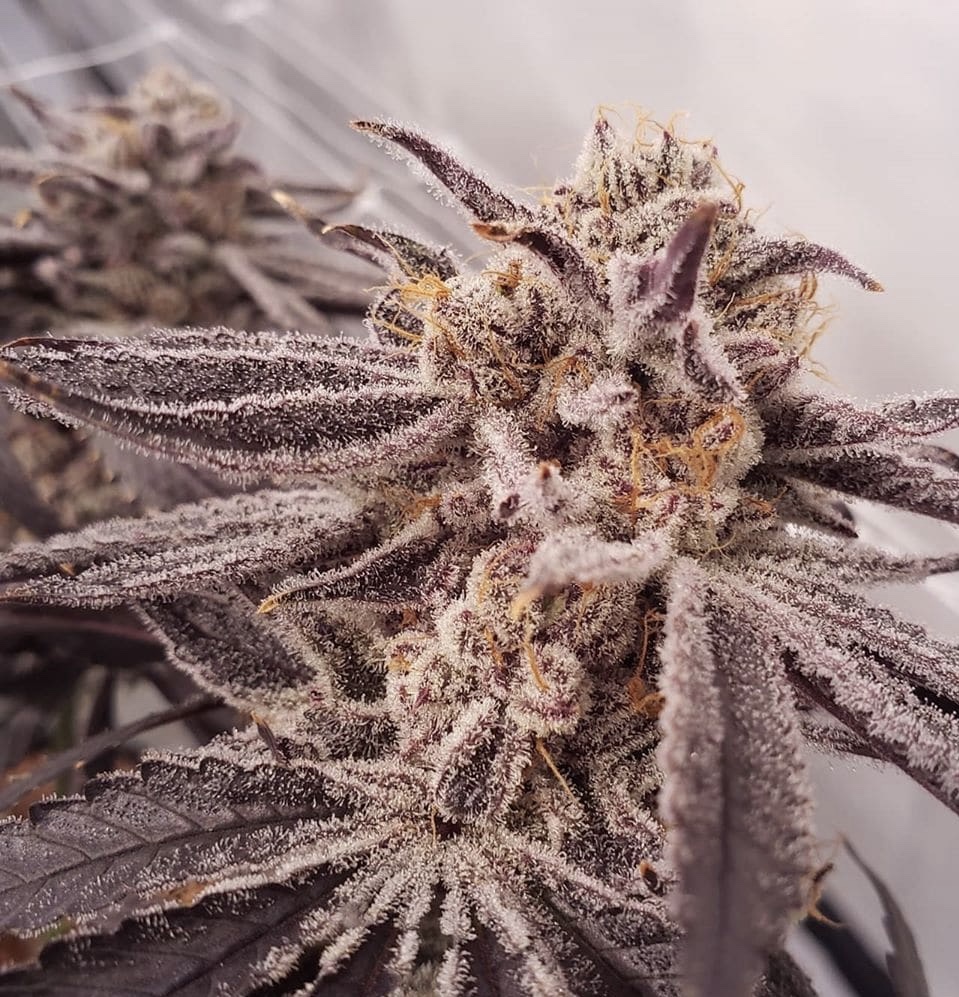 Its vibrant purple coloring adds to its allure. The deep purple hues are a visual feast, often accented with hints of orange pistils and sparkling trichomes. This striking appearance makes it a highly sought-after strain, not just for its effects but also for its exquisite visual appeal.